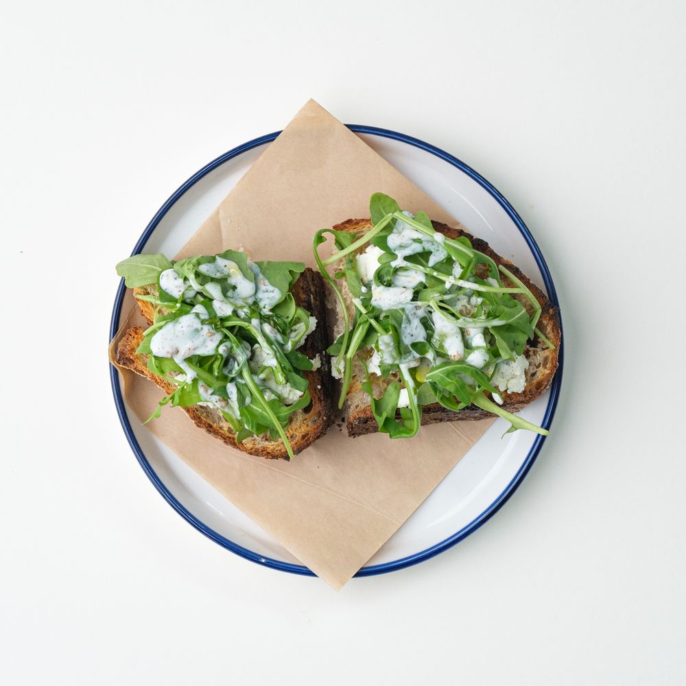 INGREDIENTS Motherloaf Sourdough Goat Cheese Arugula Zaatar Goat Kefir FOR Protein, Gut Health, Rich in Minerals WHEN Proper Lunch, Afternoon Snack, Post Workout NOTES The rich, natural flavors of our goat cheese, the tang of the kefir, the personality of the middle eastern spice blend, zaatar, the bite of the fresh arugula. Wow. Goat cheese is rich in protein and minerals and easier to digest than cows milk products. This dish makes a perfect lunch or afternoon snack. Its high in protein and would go great after a little sweat in the gym. Goats can climb mountains, have a bite of this and their wild, athletic energy will take you over. Hip hip. Enjoy.